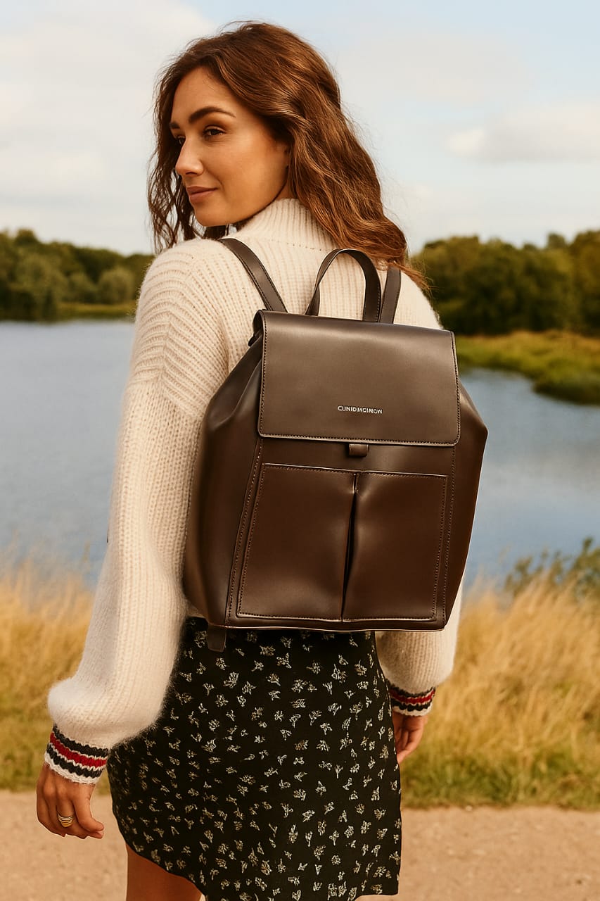 Claudia Canova two pocket backpack in chocolateAdmittedly not the most spacious of options, but this...