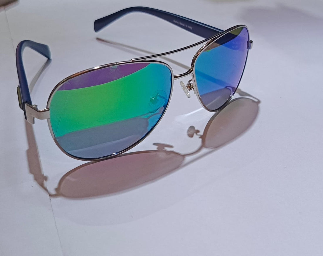 Description:Stand out with these eye-catching Gucci aviator sunglasses featuring vibrant rainbow-mirrored lenses. Designed for those...