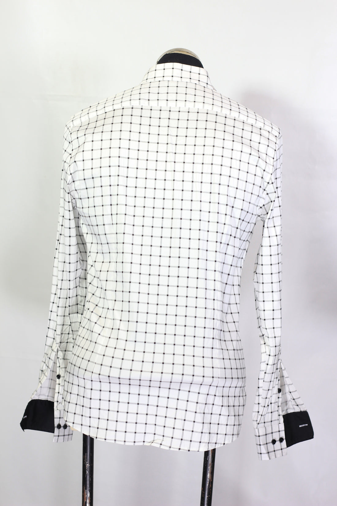 Elevate your wardrobe with this classic white and black checkered formal shirt by YT, designed...