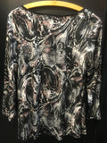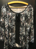 Make a bold statement with this stunning open-front jacket! Featuring a mesmerizing abstract print in shades of black, grey, and blush, this piece adds effortless sophistication to any outfit. The delicate tie-front detail enhances its feminine charm, making it perfect for layering over casual or dressy looks.