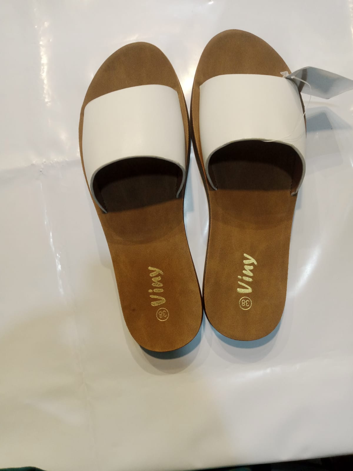 Casual White and Brown Slip-On Sandals – Comfortable and Stylish