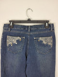 Upgrade your denim game with these stylish jeans! Featuring intricate lace embroidery and subtle sequin details on the back pockets, this pair adds just the right amount of sparkle to your everyday look. The perfect blend of comfort and elegance, these jeans are a must-have for any wardrobe!