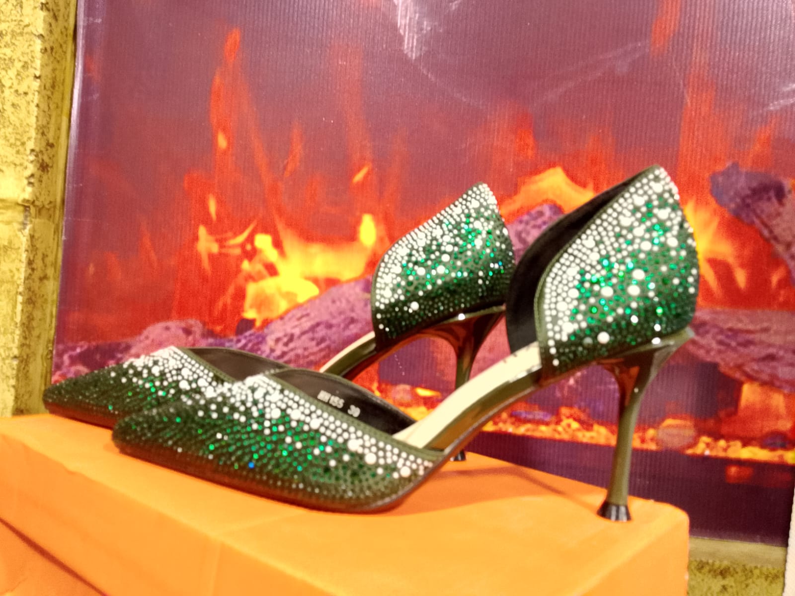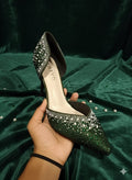 Turn heads with these dazzling emerald green stilettos. Covered in shimmering rhinestones, they add the perfect touch of glamour to any outfit. Ideal for weddings, parties, or evening events — where every step deserves to shine.