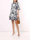 This lightweight tunic features a classic collared neckline with a button-down front, giving it a polished and versatile appeal. The soft floral print in monochrome tones adds an elegant touch, while the adjustable drawstring waist provides a flattering silhouette. The rolled-up sleeves enhance the relaxed yet trendy vibe, making it ideal for casual outings or dressed-up occasions. Pair it with leggings, skinny jeans, or wear it as a mini dress for a breezy and effortless style.
