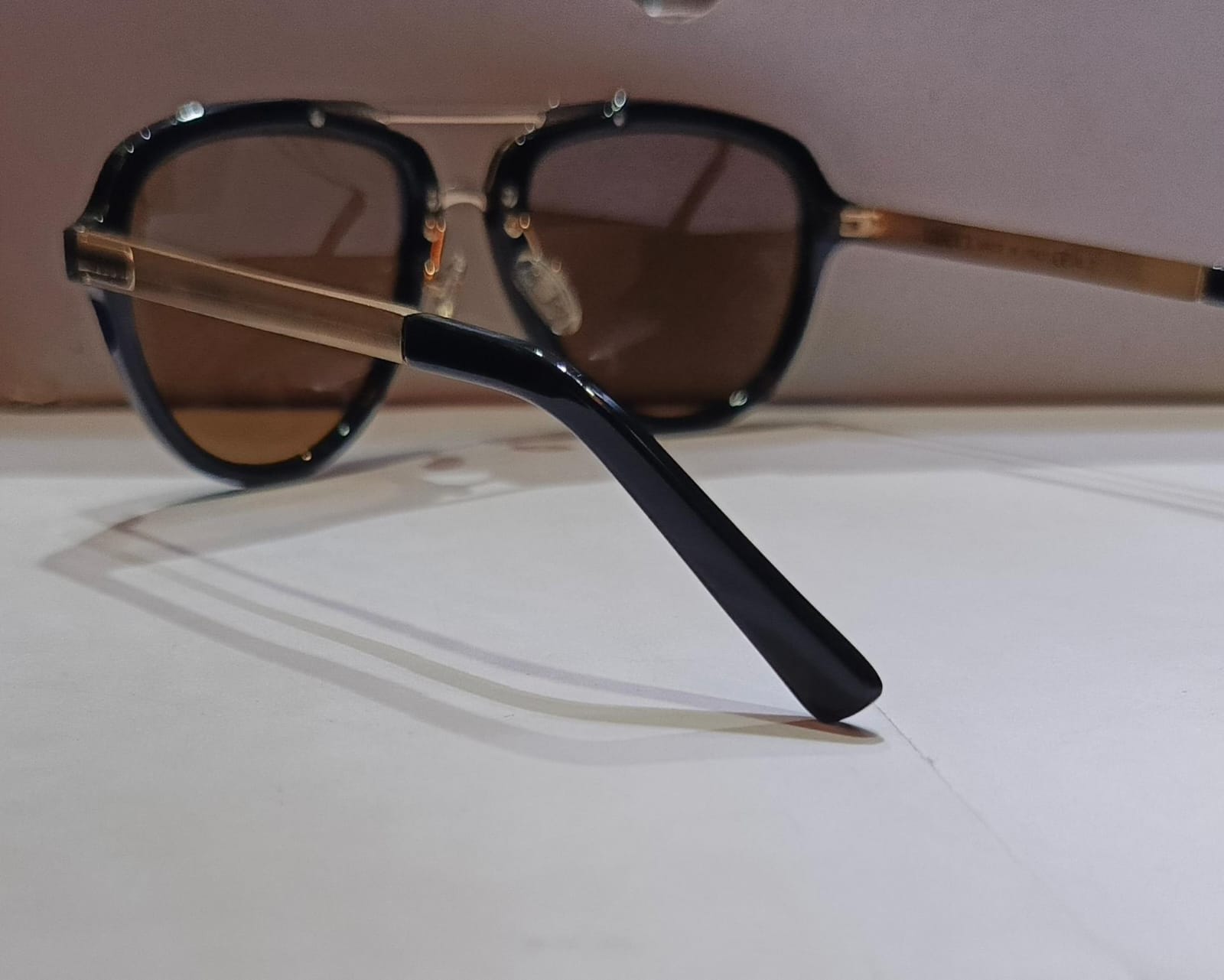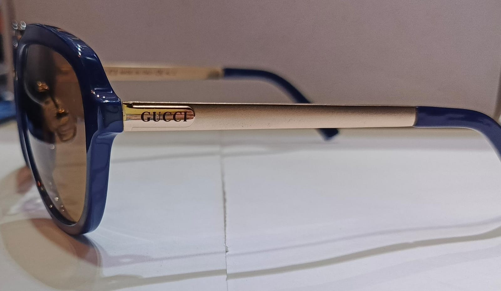 Elevate your look with these sophisticated Gucci Pilot Sunglasses, combining a retro vibe with modern luxury. The frame features a bold black acetate front, gold-tone metal bridge and temples, and brown tinted lenses that offer stylish sun protection. Fine detailing, including subtle branding on the temple arms and lens, gives these sunglasses a signature high-end finish. Designed for fashion enthusiasts who appreciate timeless Italian craftsmanship.