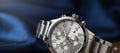 A bold, stainless-steel chronograph watch with a silver dial, large Arabic numerals, and a multi-function sub-dial layout. The robust bezel and link bracelet give a sporty yet sophisticated look, suitable for both casual and dressy occasions.