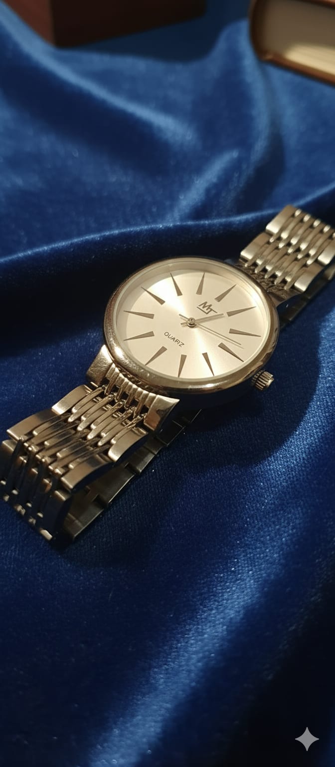 - Movement: Likely quartz (battery-powered) or mechanical (needs confirmation from case back)