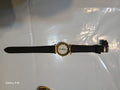 Unisex analog wristwatch with leather strap and gold-tone case.