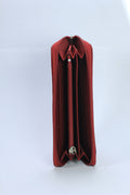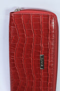 Elevate your style with this sleek red croc-embossed wallet. Designed for the modern minimalist, it combines elegance and functionality with a smooth zip-around closure and refined metal logo detailing.