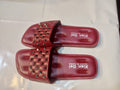 Add a chic touch to your summer wardrobe with these fashionable red slip-on sandals. Crafted with a plush, cushioned sole for comfort, the wide strap features decorative metal studs for a trendy and bold look. Perfect for casual outings, beach trips, or relaxed occasions, these sandals combine style and ease effortlessly.