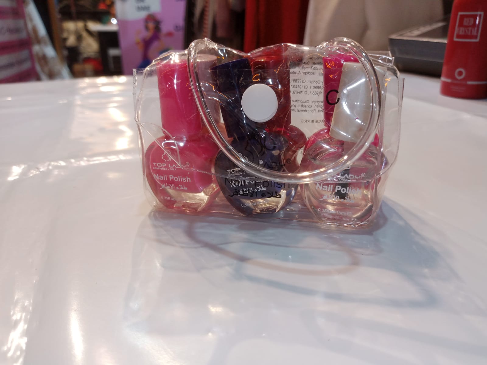Set of 5 Mini Nail Polishes in Clear Plastic Wrap