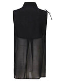 A sleek and modern black sheer tunic with a stylish back tie detail, perfect for layering and statement looks.