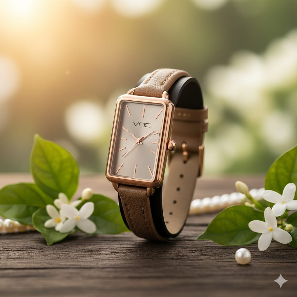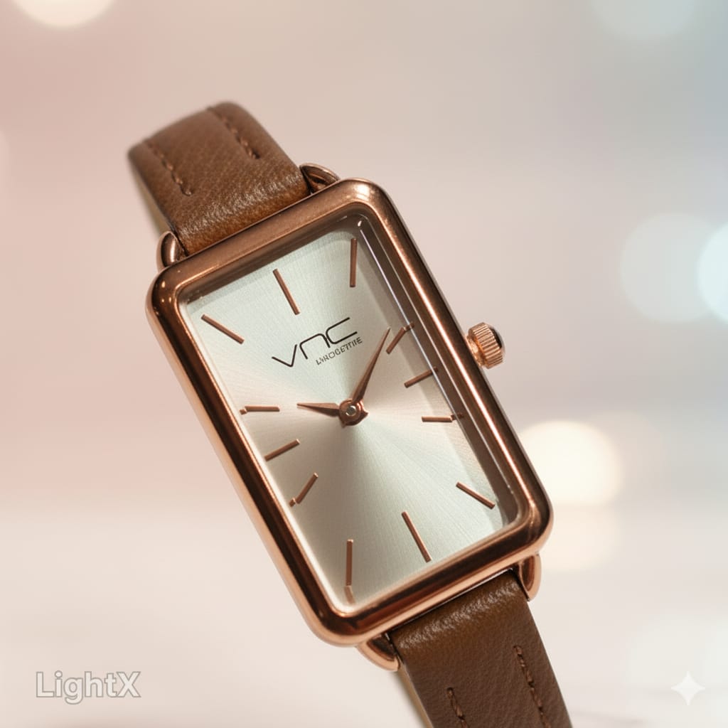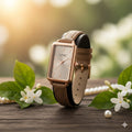 A vintage-inspired wristwatch featuring a rectangular Silver-tone case, rich brown leather strap, and a warm brown dial. The minimalist design includes simple baton hour markers and a clean, elegant silhouette suitable for formal and smart-casual wear.